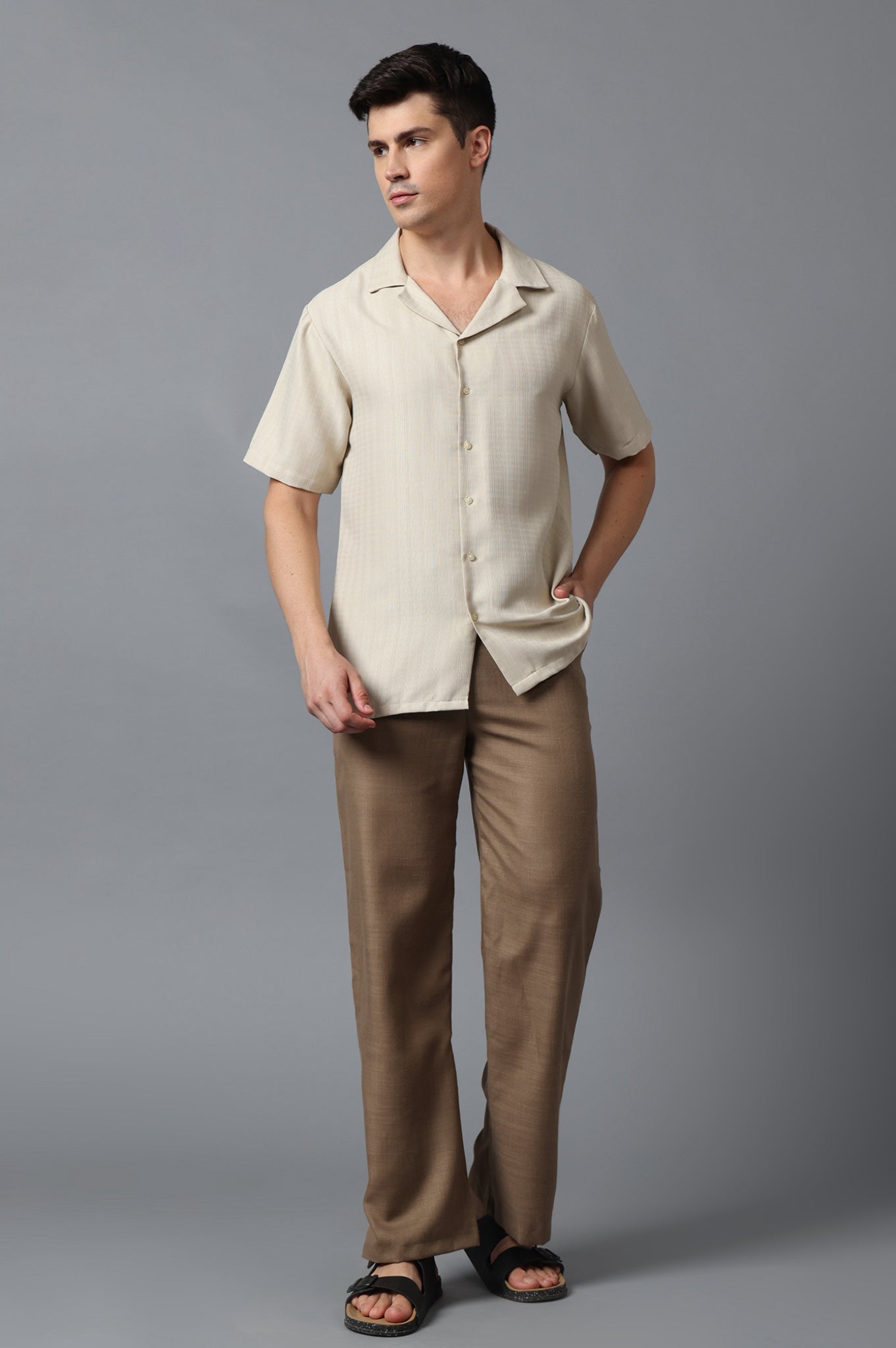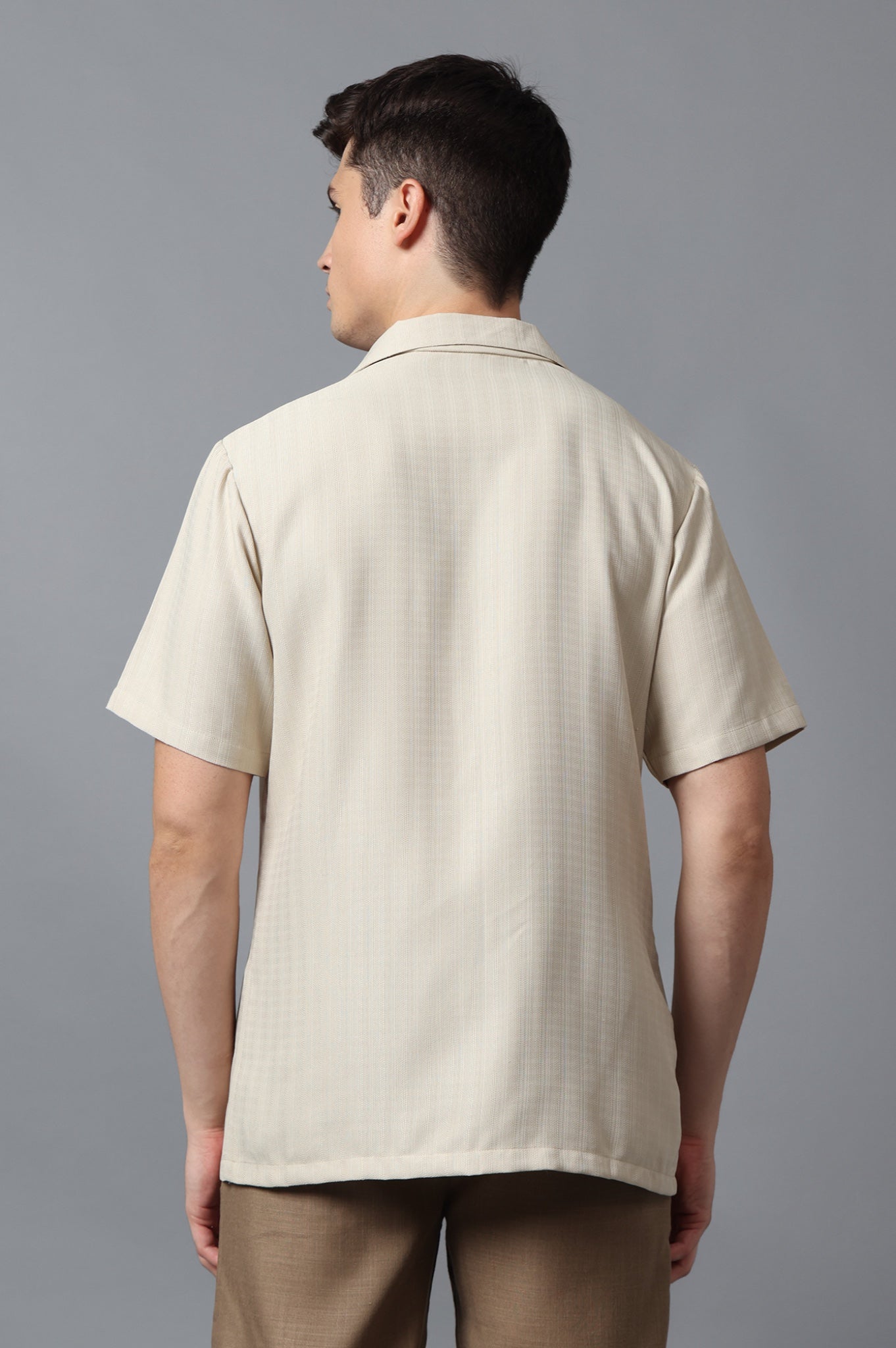 Men’s Beige Camp Collar Short Sleeve Shirt