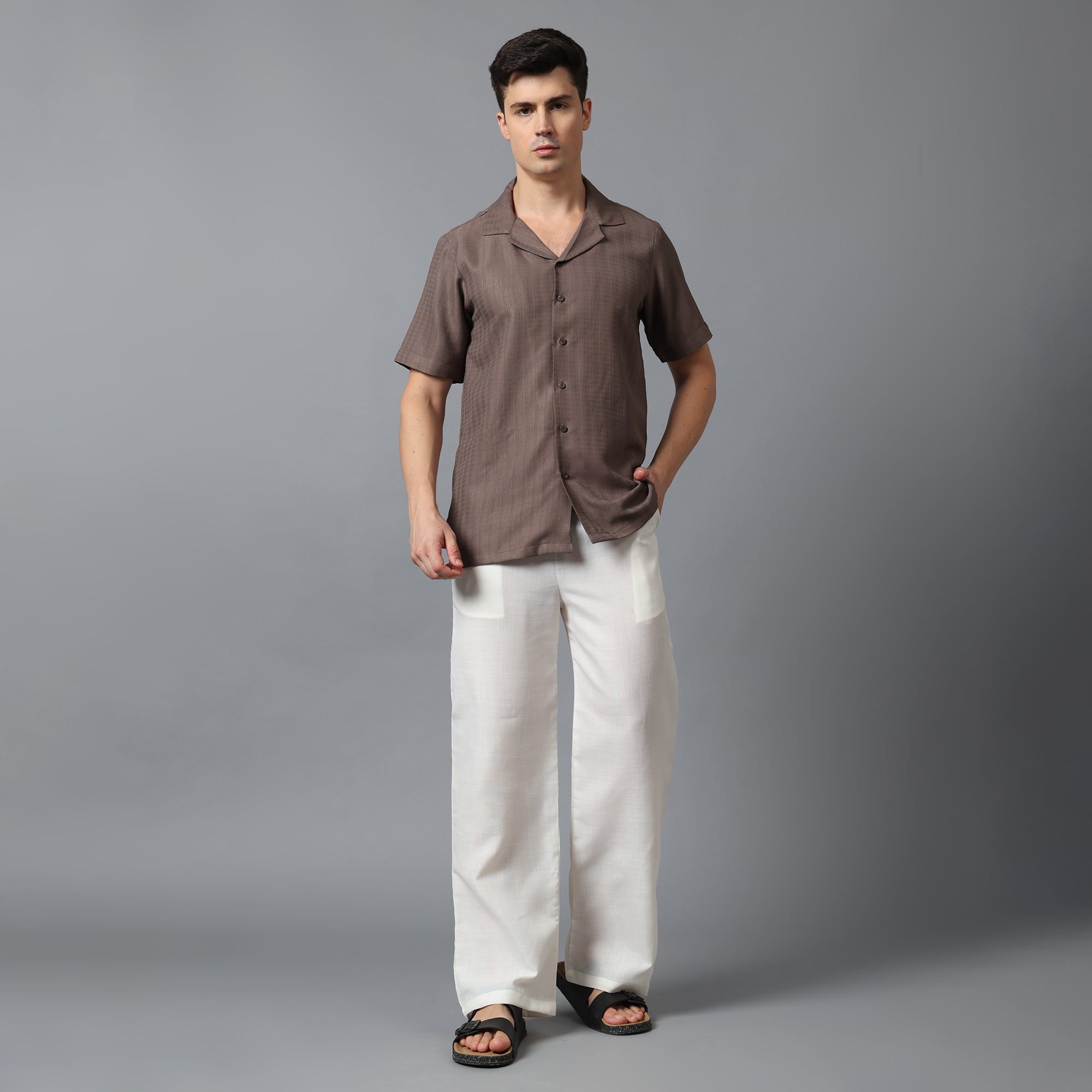 Discover effortless style with the Aemod Luxus Brrown Camp Collar Shirt. Designed from a lightweight and breathable fabric, this shirt keeps you comfortable while adding a modern edge to your everyday look. The relaxed camp collar, short sleeves, and neutral beige shade make it a versatile piece to style with trousers, jeans, or shorts. Ideal for casual wear, vacations, and summer evenings, it’s a must-have addition to every man’s wardrobe.